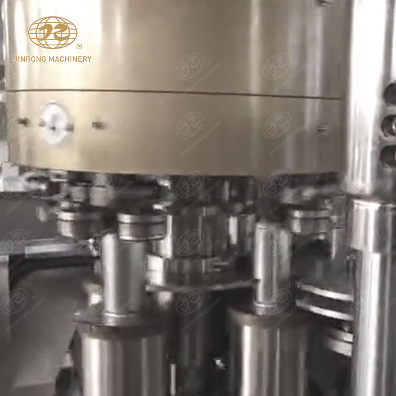 易拉罐依次由進(jìn)罐螺桿和進(jìn)罐星輪推到托罐臺上。托罐臺上的空罐上升頂開灌裝閥的密封墊進(jìn)行灌裝,灌滿的易拉罐被送到輸送帶上,送進(jìn)封罐機(jī)封蓋。封蓋機(jī)在凸輪的控制下通過取蓋、蓋翻邊、卷邊等動作完成封蓋后,易拉罐進(jìn)入實罐輸送系統(tǒng)。